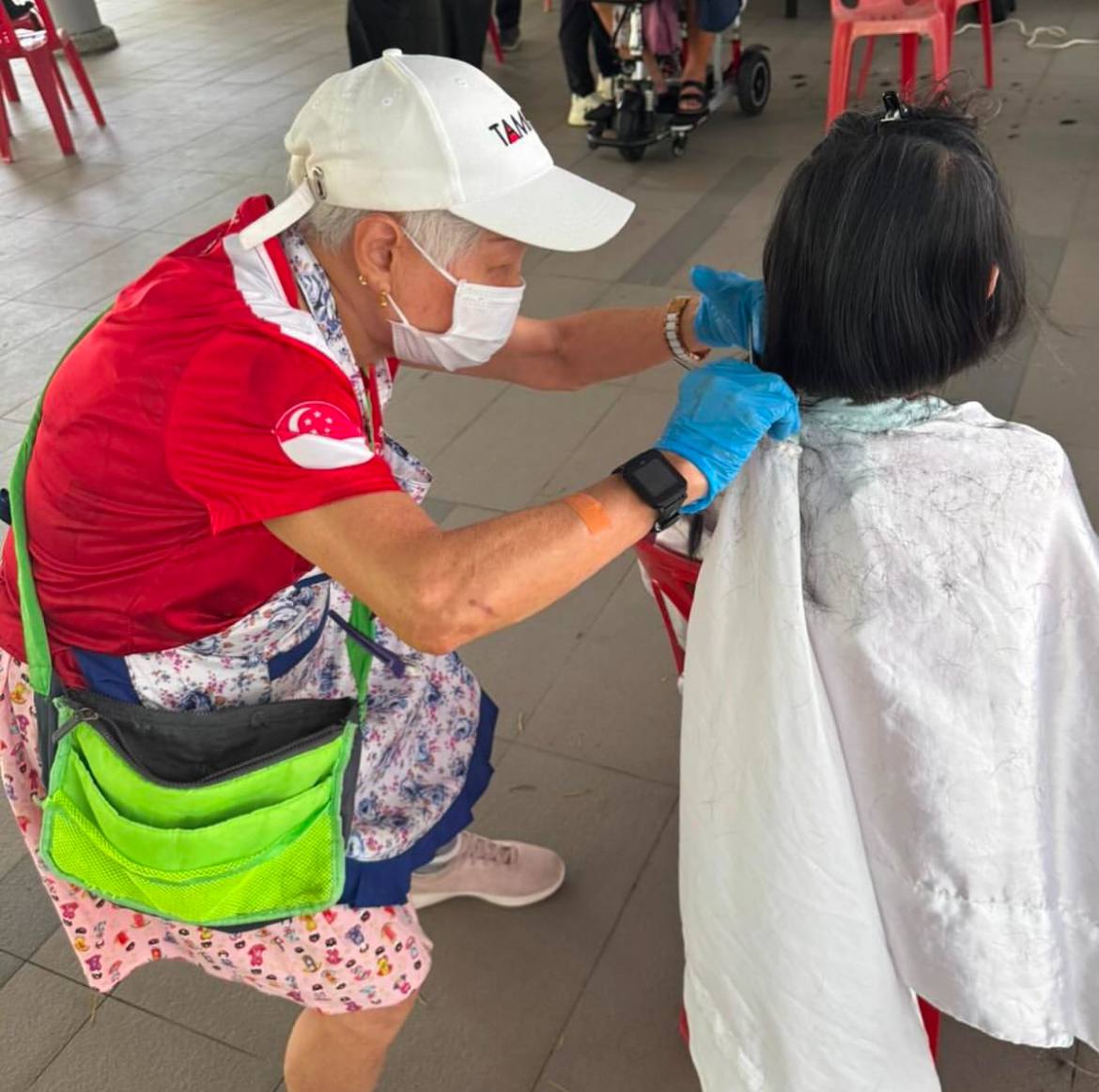 Ms Jenny Yang is one of 15 regular volunteers at a monthly free haircut service in Tampines GRC.