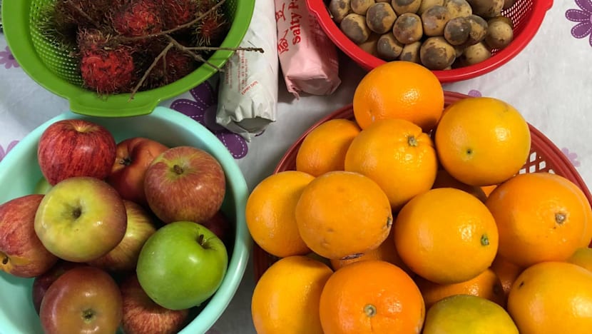 Fruits are a common food offering and oranges formed the bulk of the group’s haul. They also bagged other fruits such as apples, pineapples and rambutans — albeit in much smaller numbers.