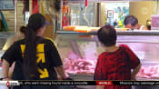 Pork sellers at Tiong Bahru Wet Market said they have had to pay about 30 per cent more for the new stock from Sarawak, and the higher costs will be passed down to customers. (PHOTO: CLARA LEE/CNA)