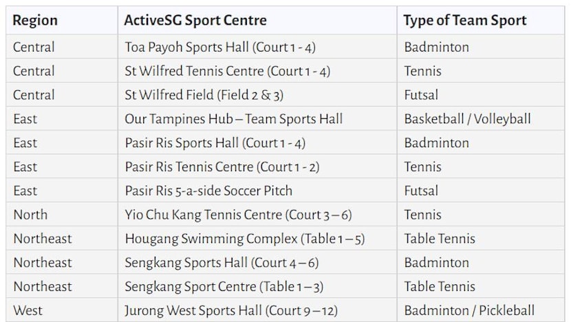These will be at suitable ActiveSG sports centres and community clubs under the People’s Association.