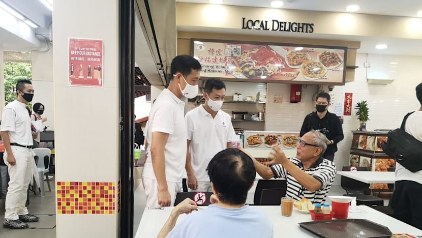 They handed out flyers to patrons of the food centre and stallholders at the market and food centre, and were seen taking wefies and exchanging greetings with the public. Instead of handshakes, which are discouraged during the Covid-19 pandemic, Mr Singh gave residents fist bumps.