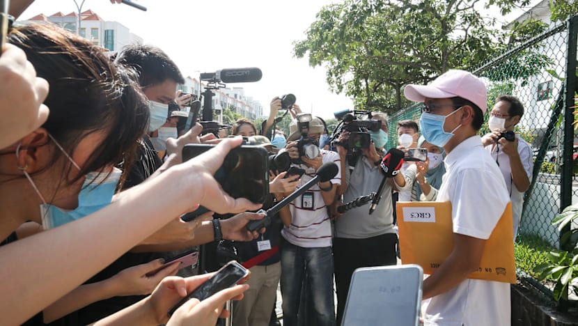 On Tuesday (June 30), he arrived at the nomination centre in Jurong Pioneer Junior College at about 11am wearing a black polo tee with a white collar, with at least two of his supporters in similar attire.