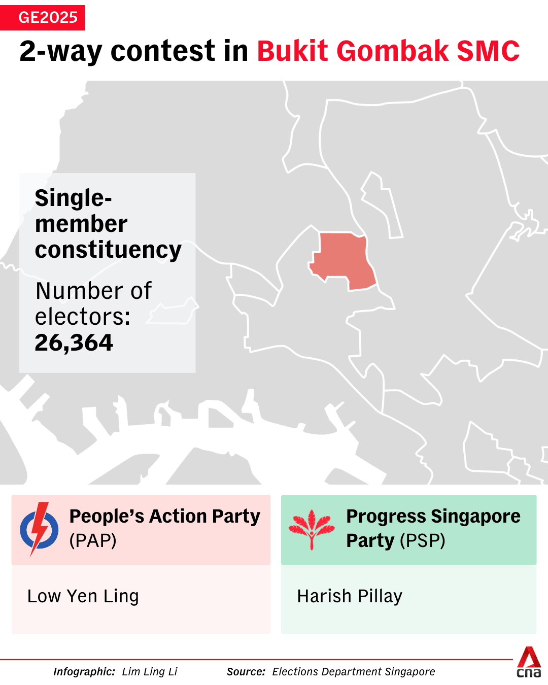 SINGAPORE: Senior Minister of State Low Yen Ling will represent the People’s Action Party (PAP) in the newly created Bukit Gombak SMC, facing off against tech veteran Harish Pillay from the Progress Singapore Party (PSP).