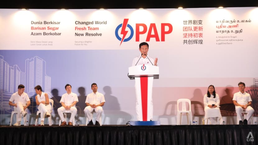 PAP's Ong Ye Kung, candidate for Sembawang GRC, speaking at a rally on Apr 28, 2025. (Photo: CNA/Lim Li Ting)