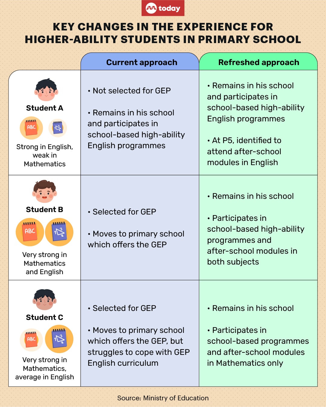 In terms of pedagogical practices, the new approach will be "largely similar" to the current programmes for higher-ability learners and the current GEP programme, he added.