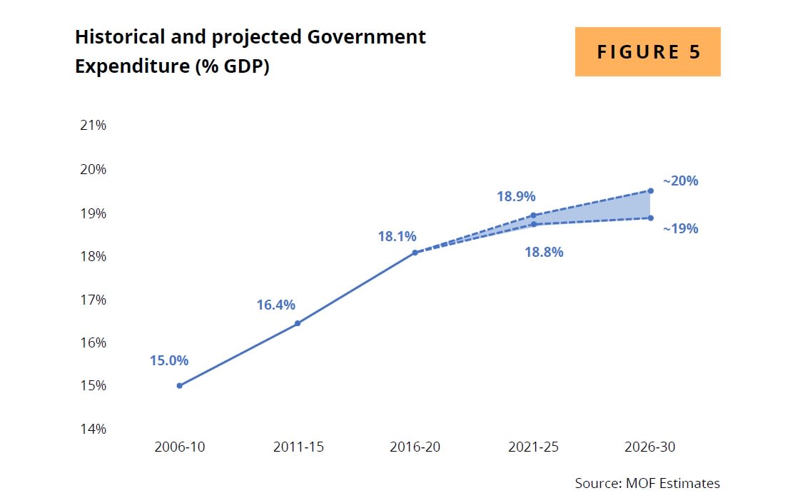 Taken together, the Government’s expenditure is estimated to increase to around 19 per cent to 20 per cent of GDP between 2026 to 2030.
