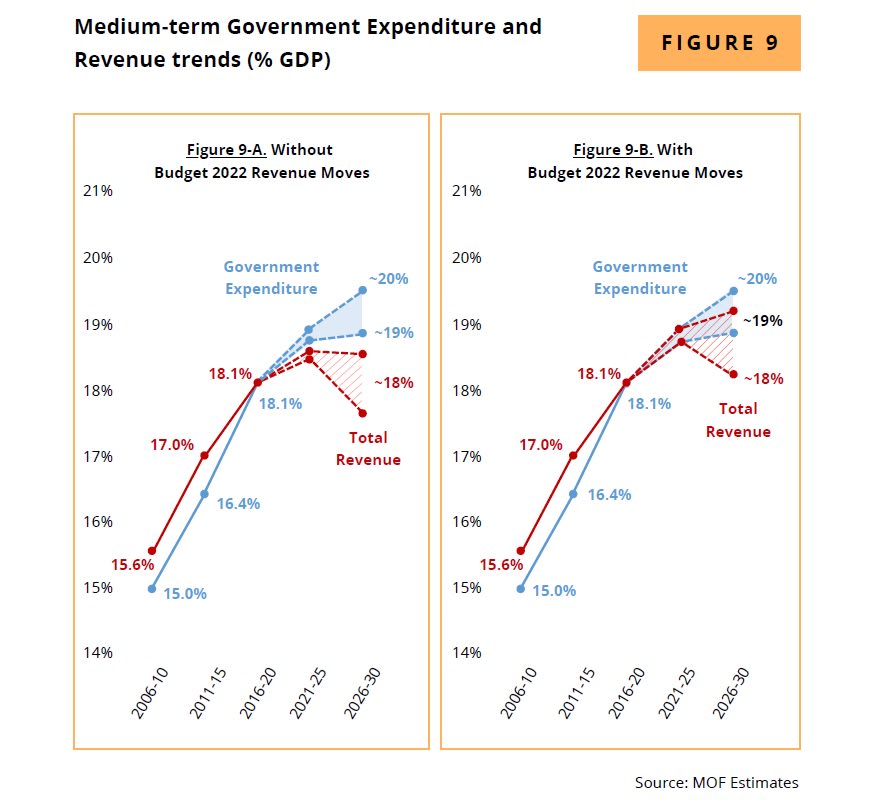“Without the revenue moves made in Budget 2022, total revenue would have fallen below the projected level of government spending within this decade,” the ministry said.