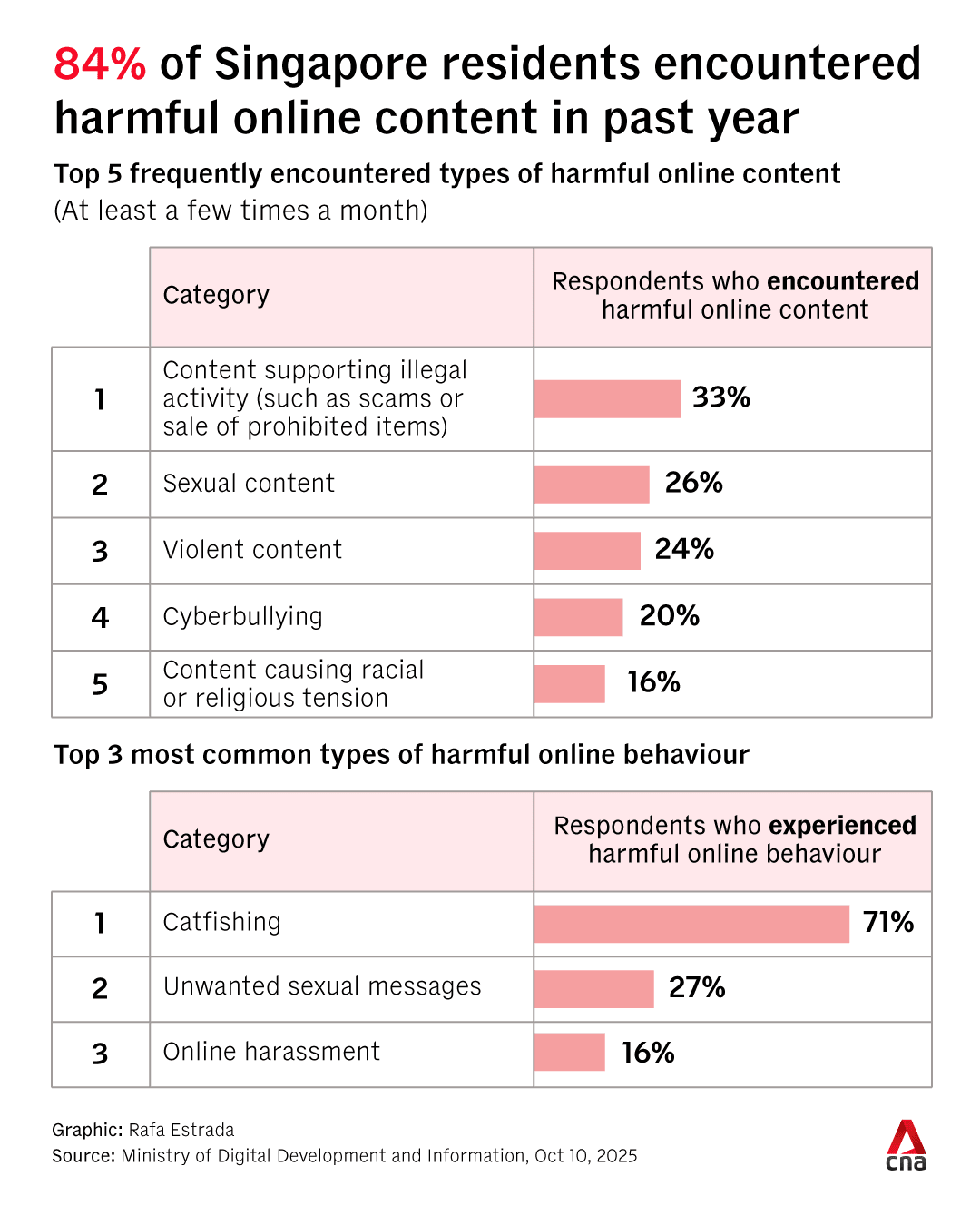 SINGAPORE: More than four in five Singapore residents reported encountering harmful online content in the past year, according to the findings of a survey conducted by the Ministry of Digital Development and Information (MDDI).