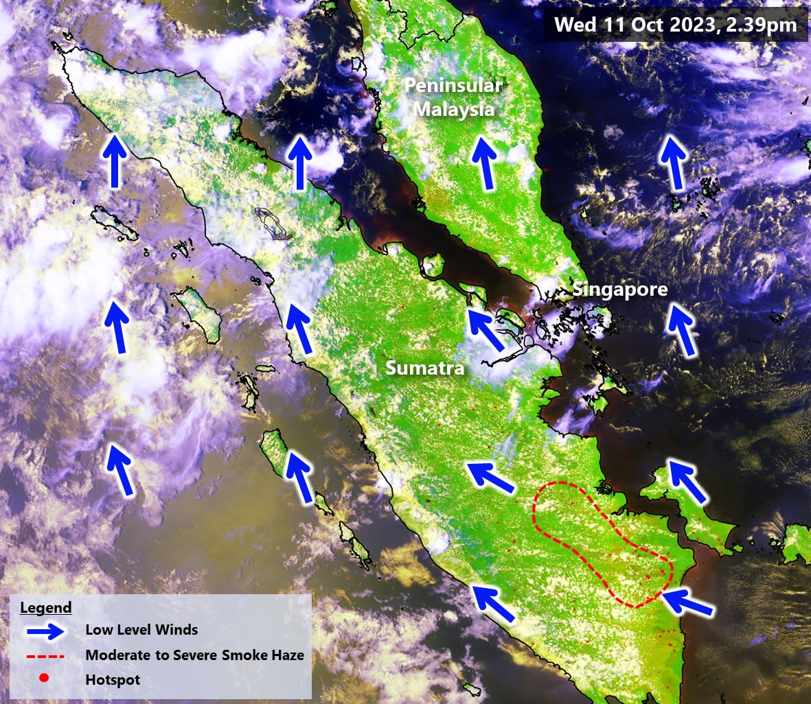 "Over southern Sumatra, moderate smoke haze was observed from satellite imagery blowing towards the north-west," said NEA.
