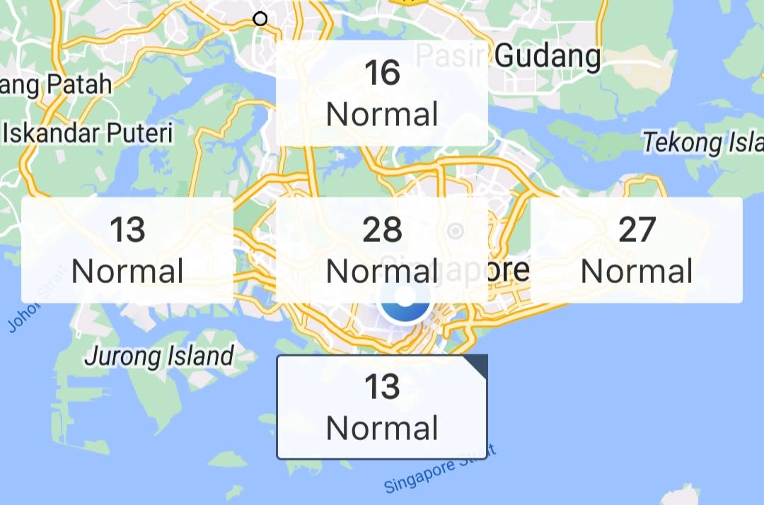 As of 6pm on Wednesday, the 1-hour PM2.5 concentration readings were in the normal range, while the PSI was between 56 and 81 in the moderate range.