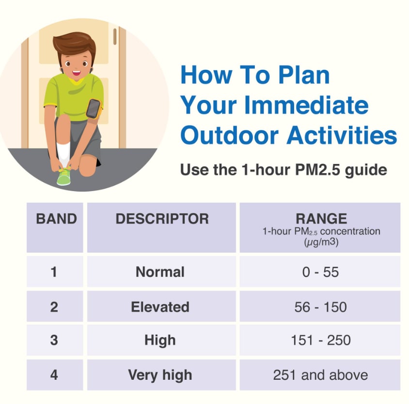 For immediate outdoor activities, members of the public should check the 1-hr PM2.5 concentration readings and personal guide.