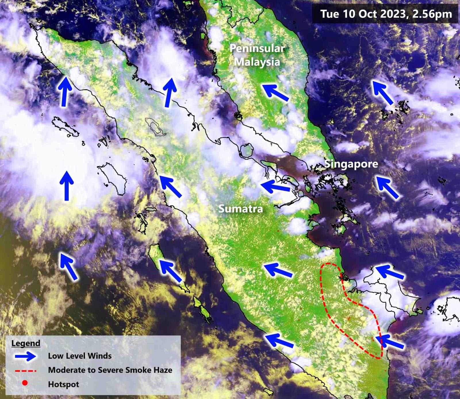 "Moderate smoke haze was observed from satellite imagery over southern Sumatra, blowing towards the northwest by prevailing winds," it added.