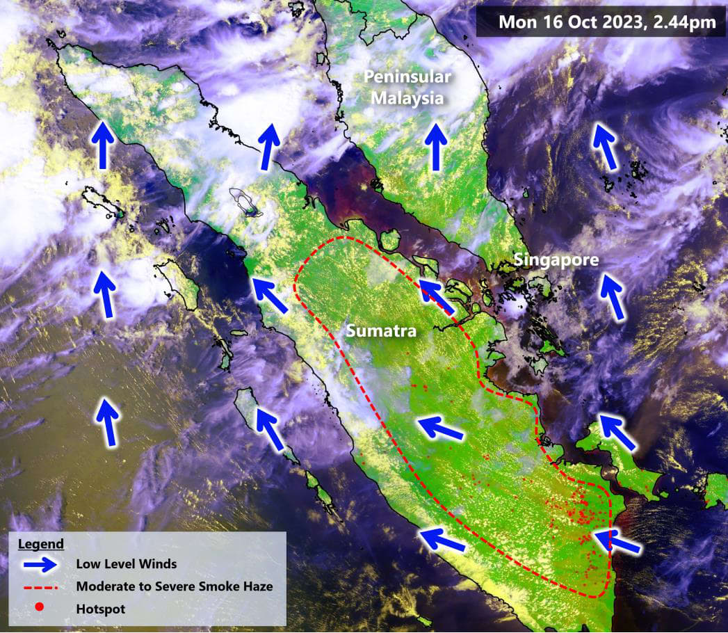 Smoke from forest fires in central and Southern Sumatra was blown by winds towards Singapore on Oct 7 and Oct 8, which resulted in hazy conditions.