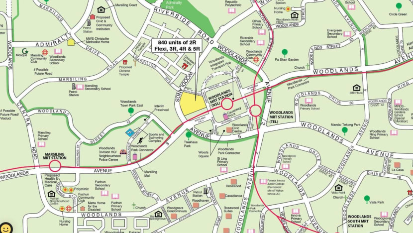 The other project is located at Woodlands Avenue 5 overlooking Woodlands MRT, and will offer two-room flexi and five-room flats on top of three- and four-room.