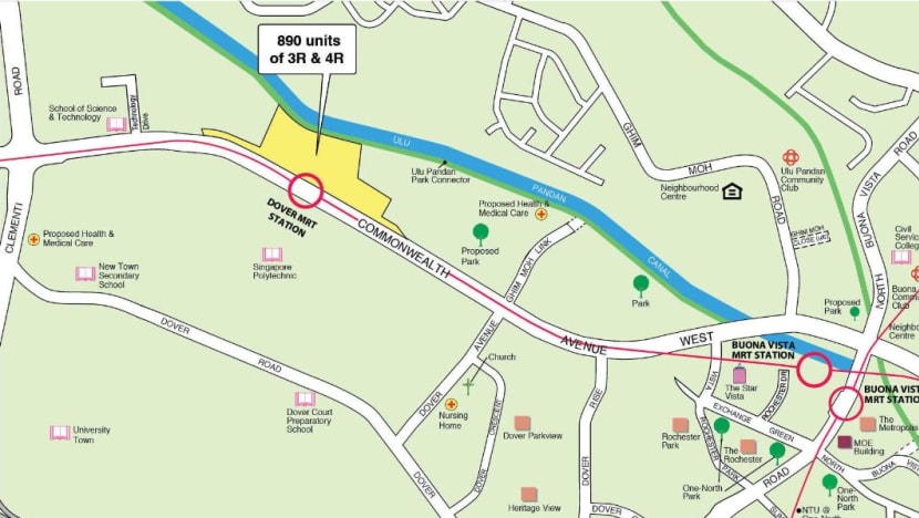 This will be the third and final project in Ulu Pandan's eastern half, with 890 three- and four-room flats overlooking Dover MRT slated to go on sale.