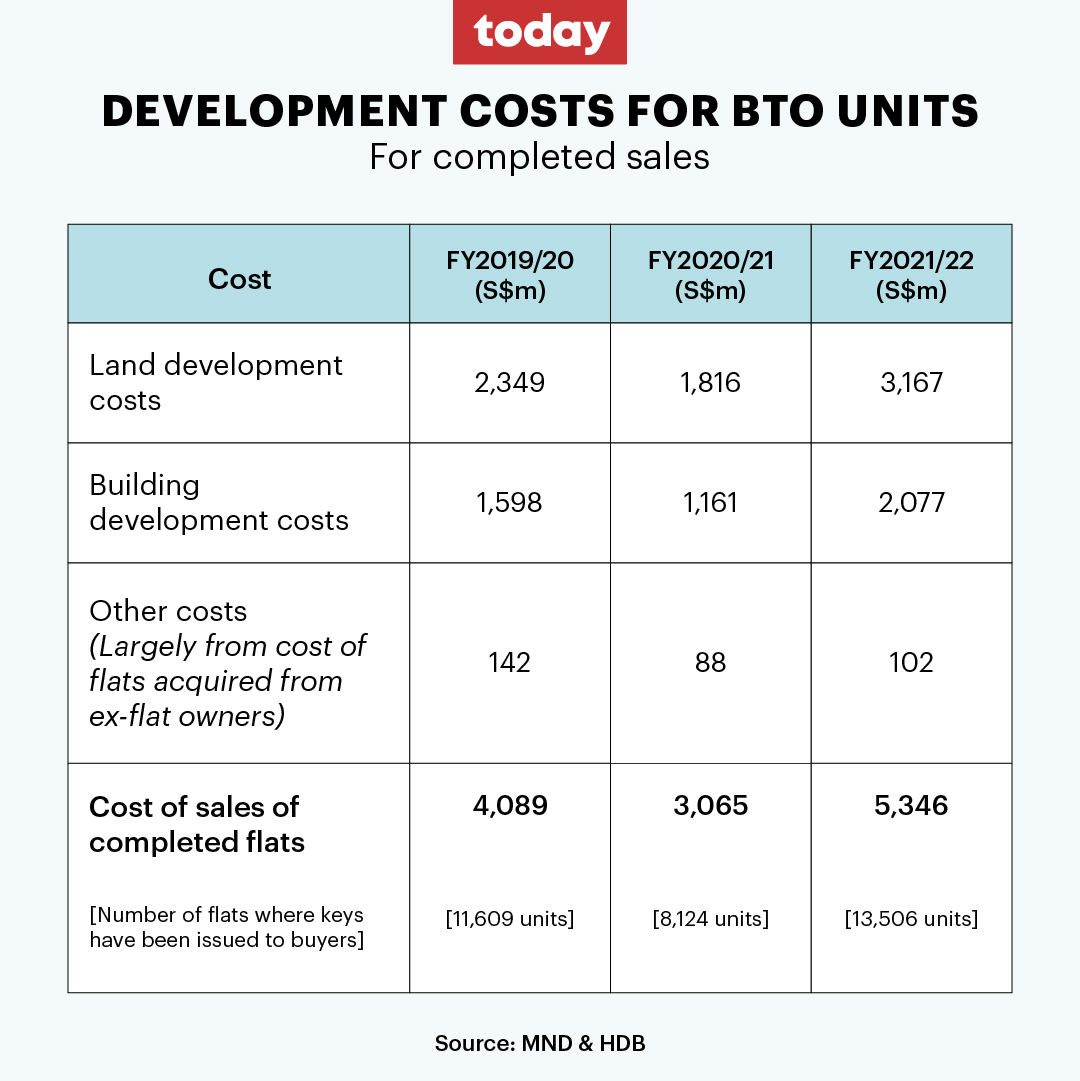 HDB also released the breakdown of development costs for flat sales since 2019.