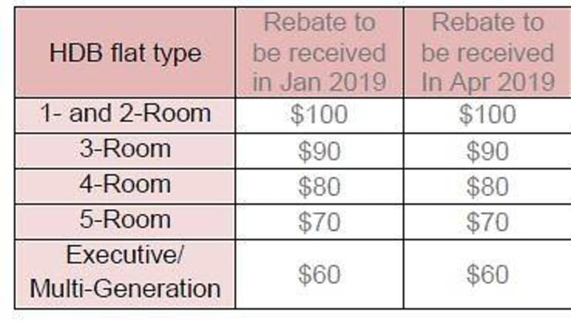 Eligible households will each receive a rebate of up to S$100 in October, depending on their flat type.