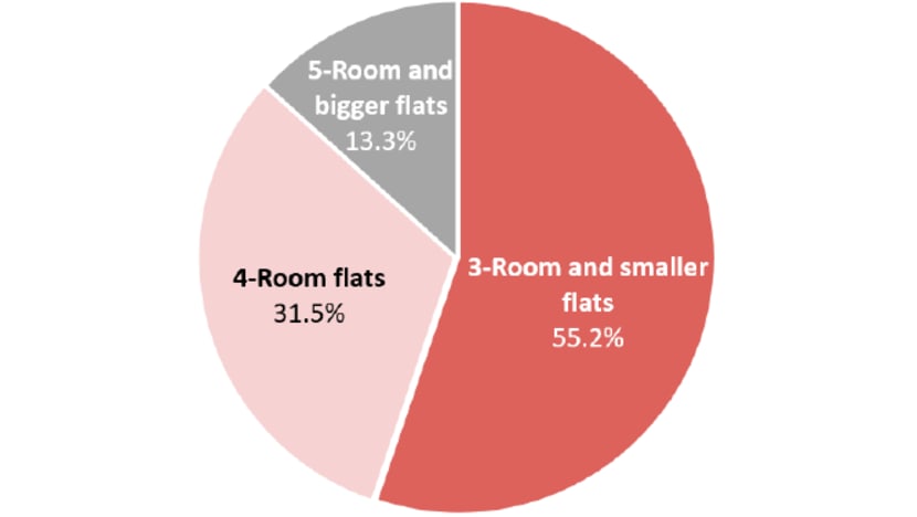 About 55 per cent of the 9,700 households who took up the scheme live in 3-room or smaller flats. Slightly more than 31 per cent live in 4-room flats while the remaining 13 per cent live in 5-room and bigger flats.