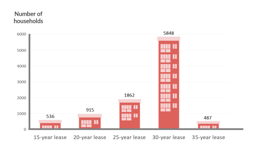 About 65 per cent of the households chose to retain lease lengths of 35 years and 30 years. Another 29 per cent opted for 25 years and 20 years. The remaining households households retained a 15-year lease.