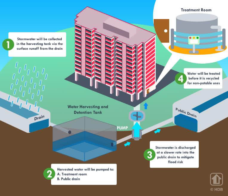 "In addition, the channelling of stormwater into the UWHS’ harvesting and detention tank can mitigate potential flood risks in an estate in the event of a heavy downpour, by slowing down the rate of discharge of stormwater into the drainage system downstream," HDB added.