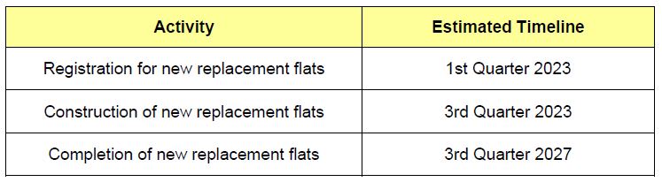 It added that flat owners will be compensated based on the market value of their flat as assessed by a professional private valuer appointed by the statutory board.