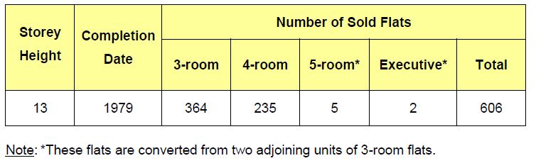 Completed in 1979, the four blocks are about 43 years old. They are made up mainly of three- and four-room flats, with a few five-room and executive units.