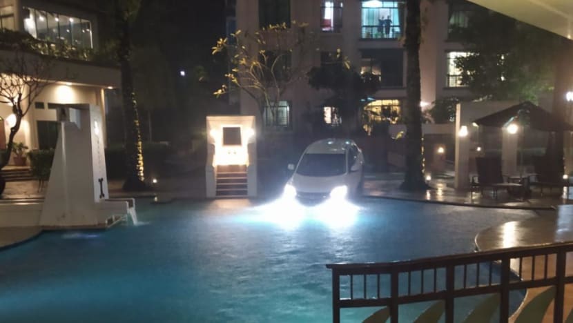 SINGAPORE: The management of a condominium in Upper Bukit Timah is seeking legal advice to claim for property damage after a car veered off into a pedestrian pathway and ended up in one of its swimming pools.