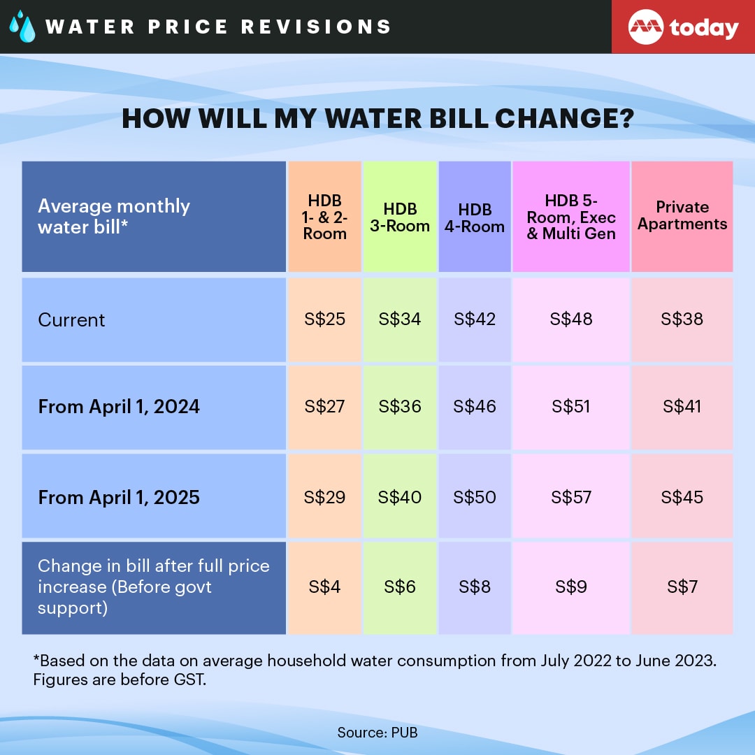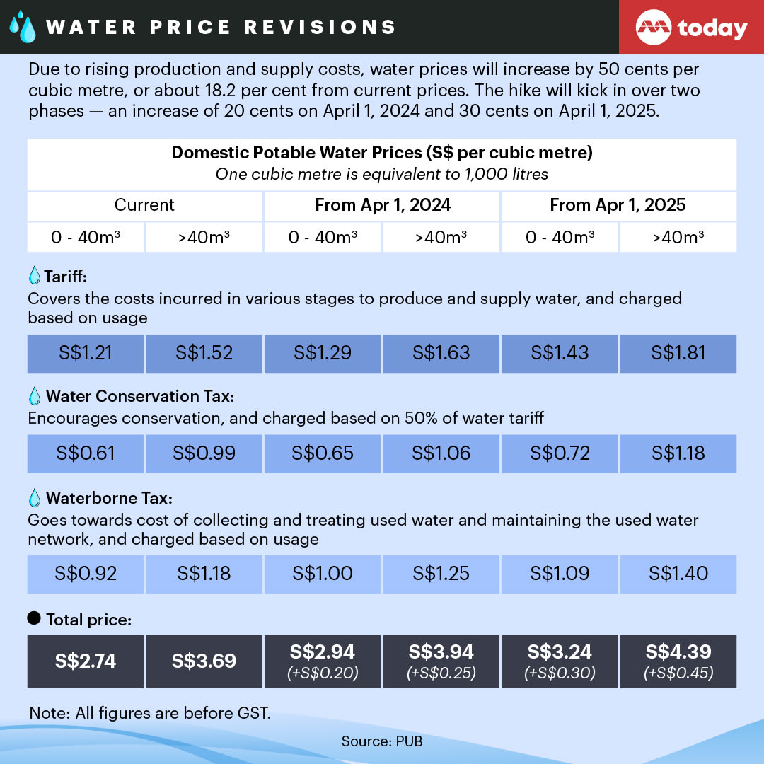 - A further increase of 30 cents per cubic metre will be rolled out on April 1, 2025, raising the price to S$3.24