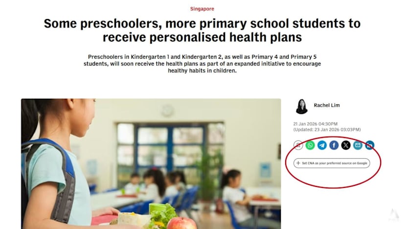 Google now lets you choose the publishers you’d like to see more often in the “Top stories” section. So if you set CNA as a preferred source, Google can prioritise CNA content for you.