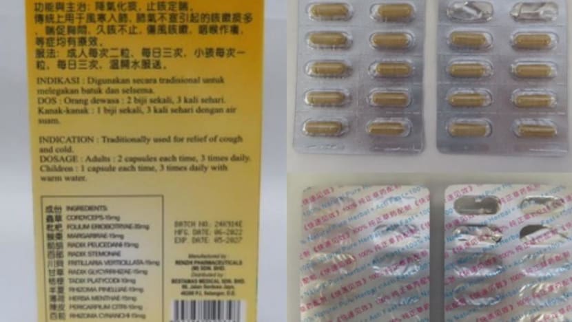 SINGAPORE: Two products - marketed separately for pain relief and cough relief - have been found to contain steroids, and health authorities on Friday (Apr 14) warned the public against buying or consuming them.