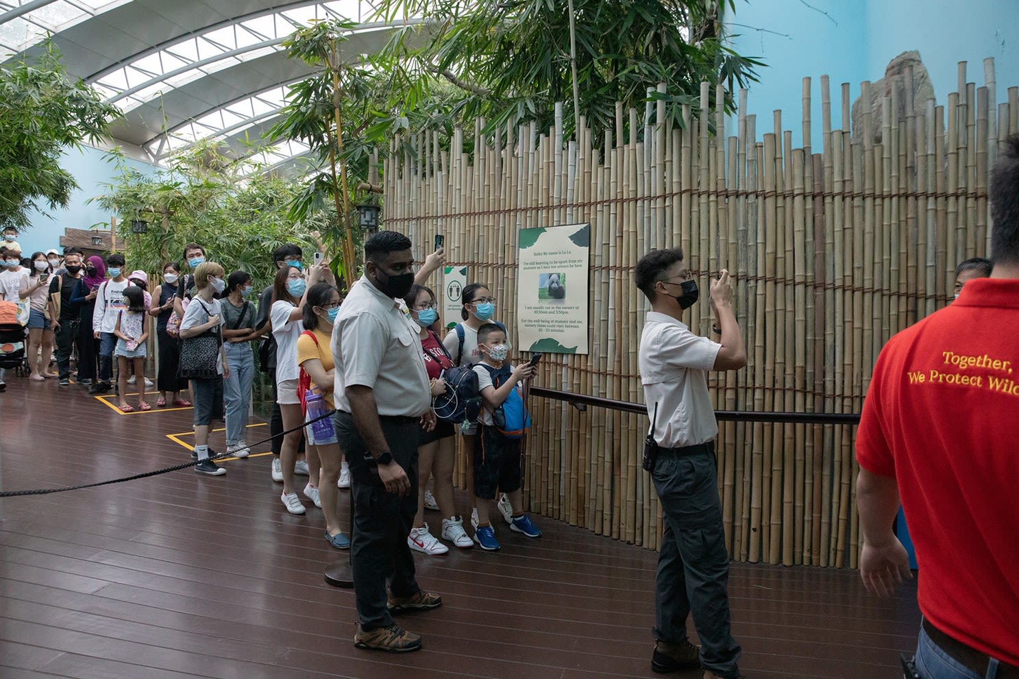 Due to the large number of people, visitors could only take a quick look at Le Le in his new nursery and take a few photos before they were being ushered away.