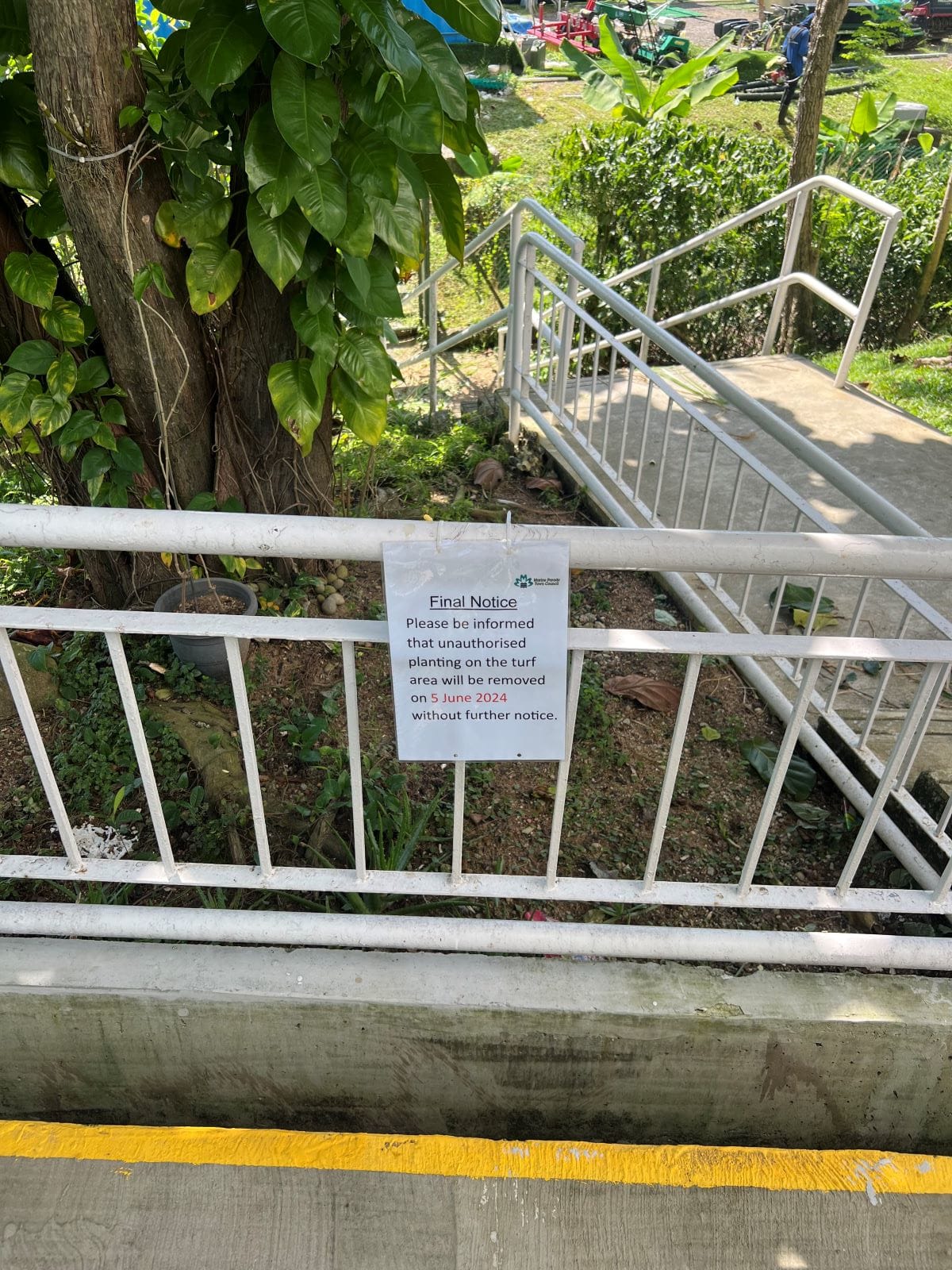 The town council said it issued multiple advisories and installed a sign reminding residents not to plant in common areas. It did not respond to CNA's questions about why the community garden was removed or if fines were issued.