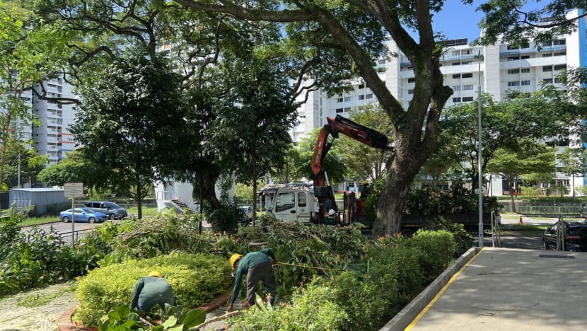 When CNA visited the block later the same day, most of the moringa trees had been removed. Workers also pruned a tall tree that reached the second storey of the block.