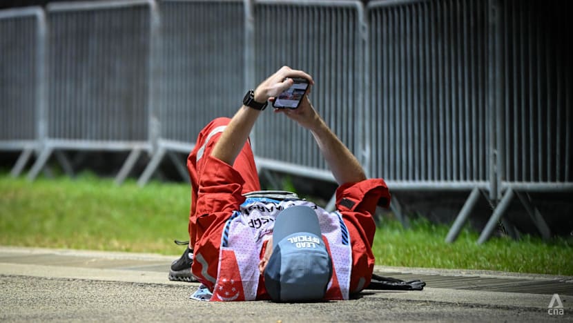 Mercedes’ George Russell cooling down after winning the F1 Singapore Grand Prix on Oct 5, 2025. (Photo: CNA/Lim Li Ting)