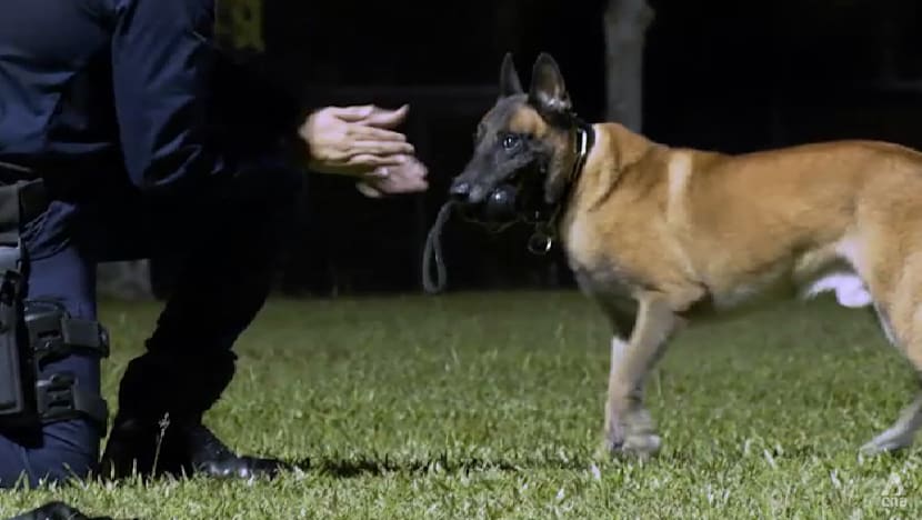 SINGAPORE: Every morning begins the same way for three-year-old police dog Aston – a shower and a quick grooming session, and it is ready for duty.