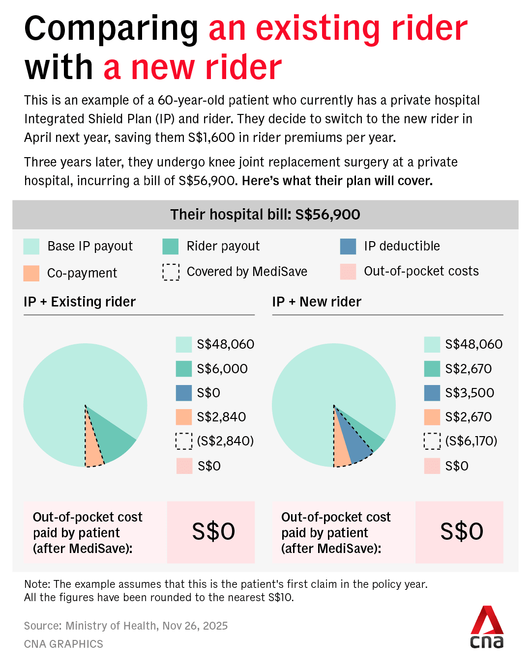 This translates to annual savings of about S$600 for policyholders with riders for private hospital coverage and S$200 for those with riders that cover public hospitals.