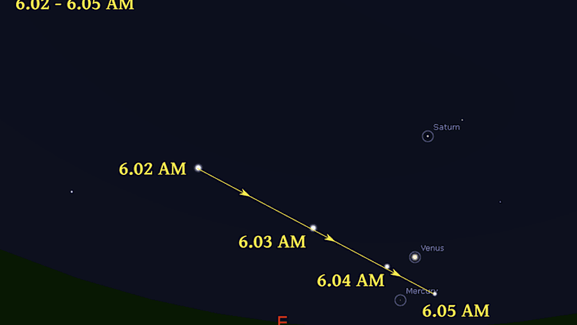 The best timing to see all five planets will be around 6am, and the one of the best places will be at East Coast Park, said Science Centre Singapore. The planetary parade can also be viewed from one’s home, if there is a high and unobstructed view to the Eastern horizon.