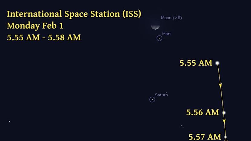 SINGAPORE — Stargazers in Singapore are in for a treat this weekend as the International Space Station (ISS) will make an appearance in our skies along with Jupiter, Saturn, Mars, Venus and Mercury.