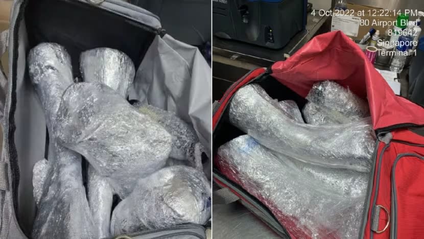 Fifteen minutes before his connecting flight to Laos was to leave, a baggage screening officer at Changi Airport spotted organic material shaped like horns in the two bags.