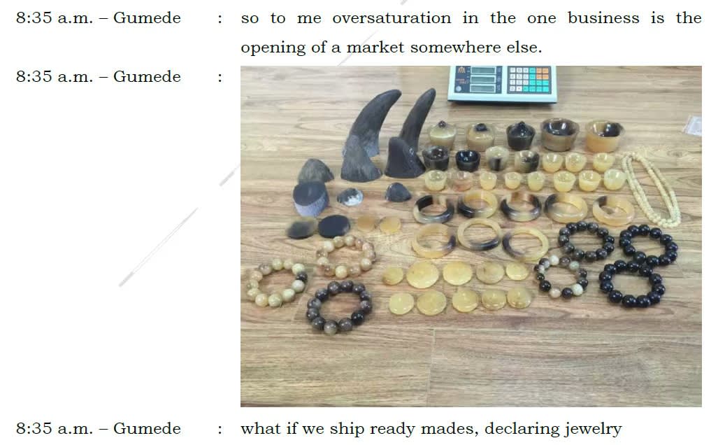 The horns, which Jaycee had purchased from illegal poachers in South Africa, were meant to be sold to a person known as Jimmy in Laos.