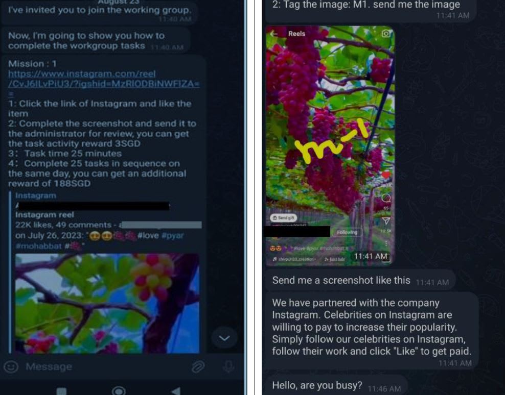 Victims would receive unsolicited WhatsApp or Telegram messages asking them to participate in a survey or like social media posts in exchange for a small commission.