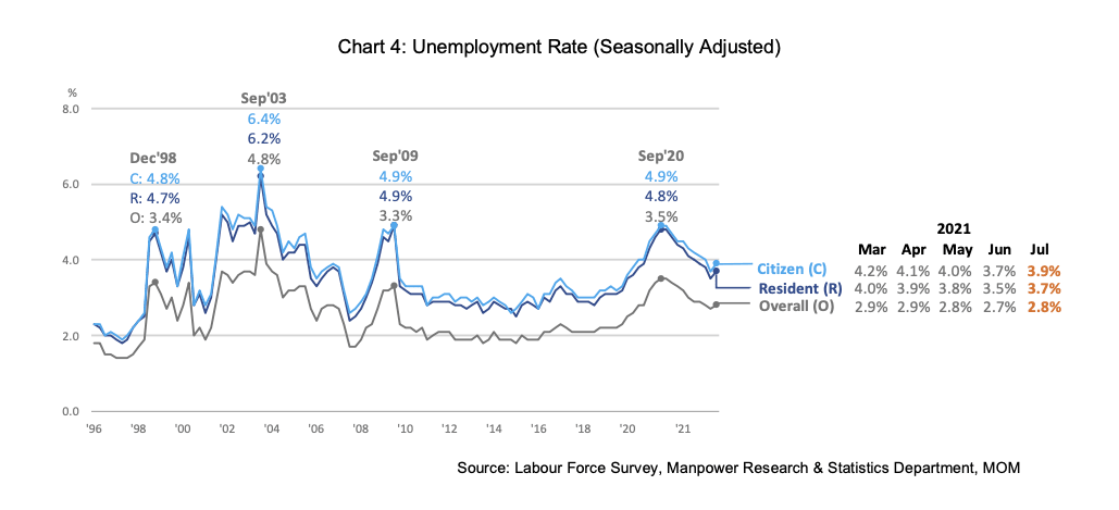 This is despite the downtrend in seasonally adjusted unemployment rates in June, with the rate at 3.5 per cent for residents and 3.7 per cent for citizens.
