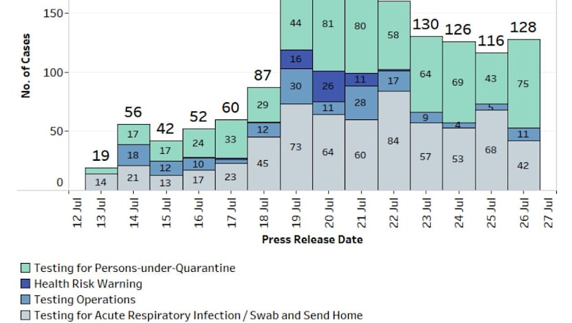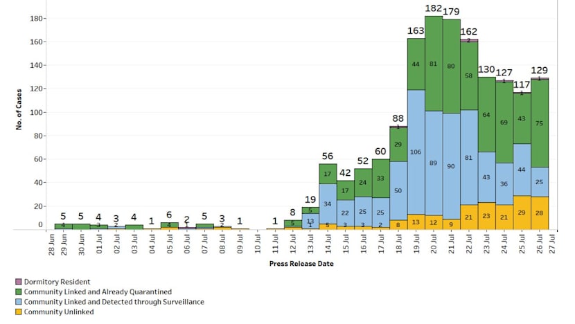 - Singapore recorded 135 new cases of Covid-19 on July 26, six of which were imported