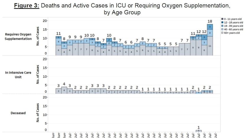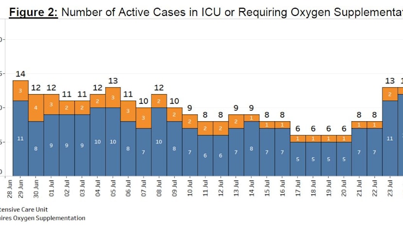 So far this month, the number of people needing oxygen support had ranged from five to 12 in the daily update.