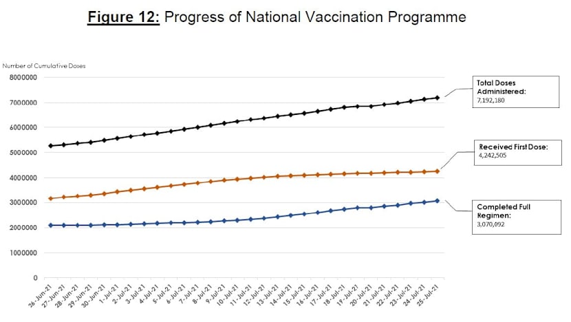 About 7.19 million doses of Covid-19 vaccines had been given to more than 4.24 million people as of Sunday, MOH said.