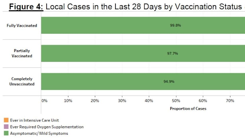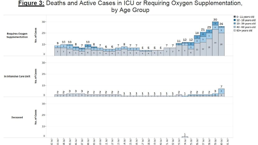 Over the last 28 days, 43 patients required supplemental oxygen, were admitted to intensive care units or had died. “Twenty-five were unvaccinated, 16 were partially vaccinated and two were fully vaccinated,” the ministry said.