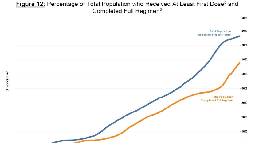 Some 3.26 million people have completed the full vaccination regimen, consisting of 121,963 recovered persons who received at least one dose and about 3.14 million who received their second dose.