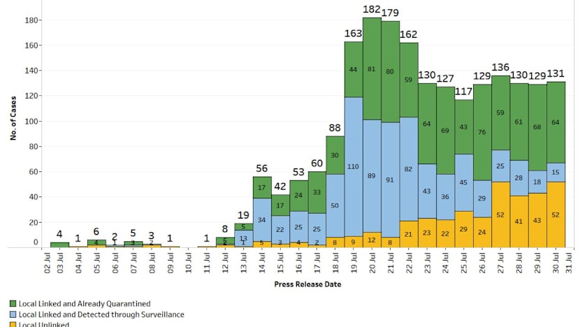 The number of cases with no known links in the community has, however, shot up from 83 in the week before to 257 in the past week.