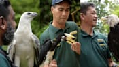 Mr Chandramohan, a manager with the animal behaviour and programmes team, works with the park’s birds of prey, getting them comfortable with the new Sky Amphitheatre.