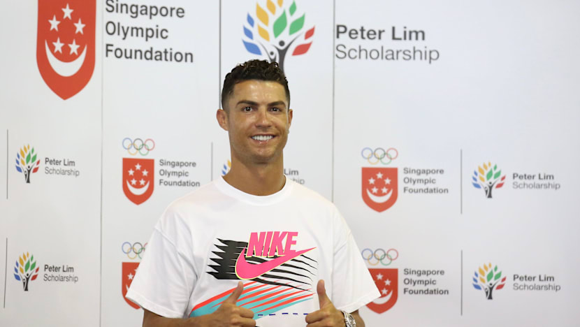 SINGAPORE — Hundreds of primary school children cheered as Juventus superstar Cristiano Ronaldo performed football tricks, took pictures and answered questions during an appearance at a local primary school on Thursday (Jul 7).